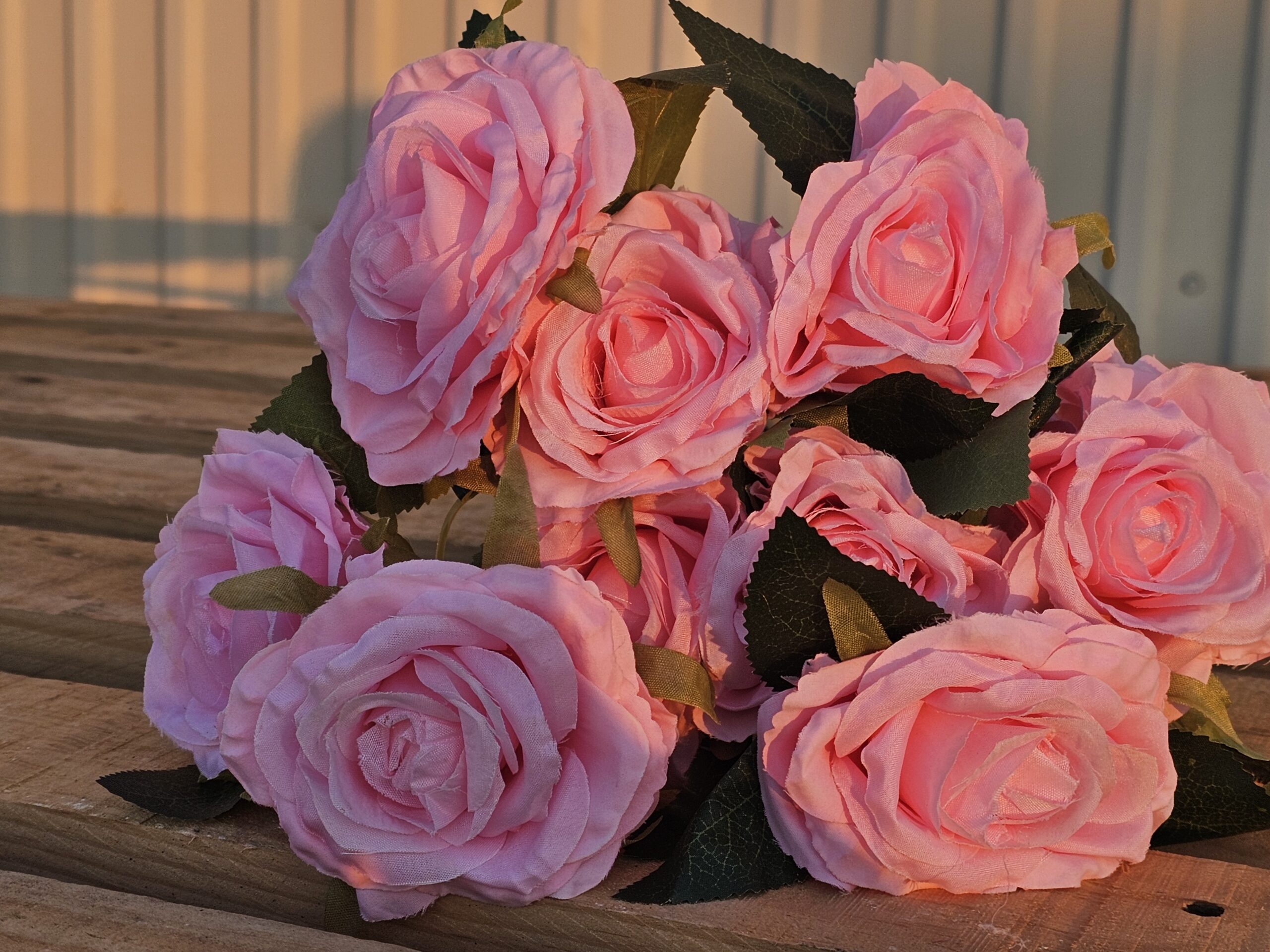 BUKET ROZIH RUŽA SA 10 CVJETOVA U BUKETU I SA LIŠĆEM, DUŽINA BUKETA OKO 48CM.