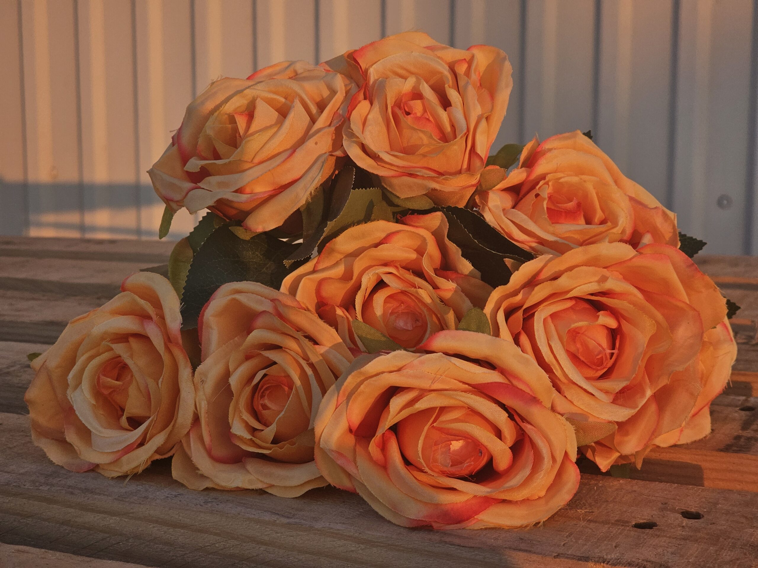 BUKET NARANČASTIH RUŽA SA 10 CVJETOVA U BUKETU I SA LIŠĆEM, DUŽINA BUKETA OKO 48CM.